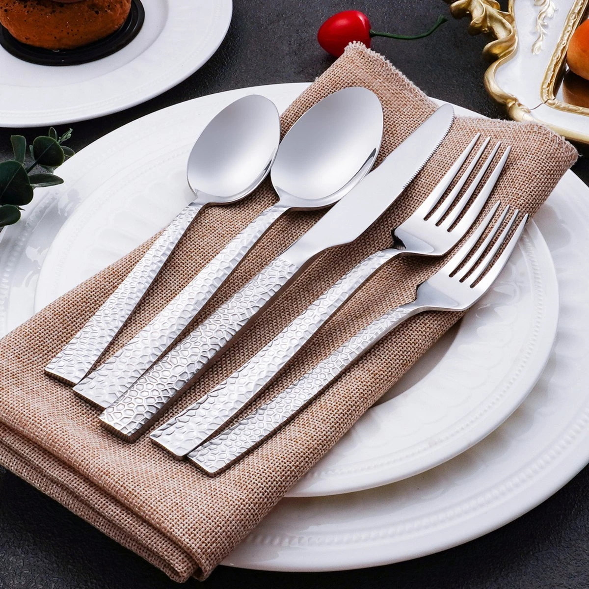 Deleca 6 Persoons Bestekset Deluxe (30-delig) – Vorken, Lepels En Messen – Vaatwasserbestendig – Gehamerd – Zilver / RVS