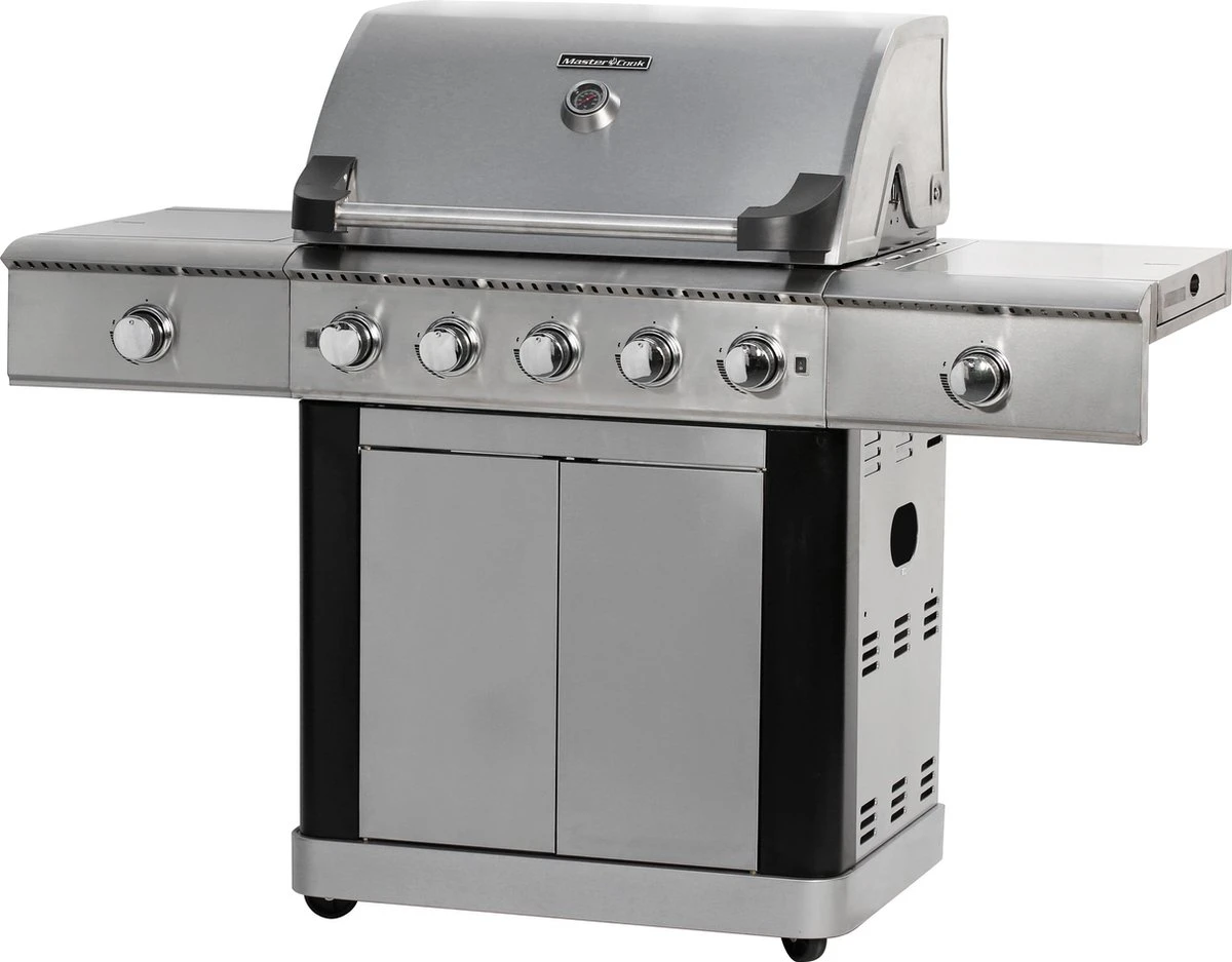 Uitgerust met vijf hoofdbranders, een infrarood brander en een extra zijbrander. De branders zijn eenvoudig aan te steken en daardoor heb je de volledige controle over het tegelijkertijd bereiden van verschillende soorten voedsel op verschillende temperaturen. Dankzij de thermometer kan je eenvoudig de temperatuur regelen tijdens het barbecueรซn. De barbecue is voorzien van halogeen verlichting voor als het schemerig wordt. Daarnaast is het bedieningspaneel voorzien van sfeervolle LED-verlichting. Ook is er opbergruimte beschikbaar onder de barbecue en voorzien van deuren. Deze barbecue heeft vier wielen en kan eenvoudig worden verplaatst zonder zwaar te hoeven tillen.