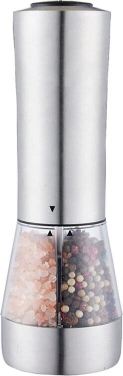 Deze elektrische peper- en zoutmolen is met één druk op de knop te bedienen terwijl jij je andere hand vrij hebt om in de pan te roeren.