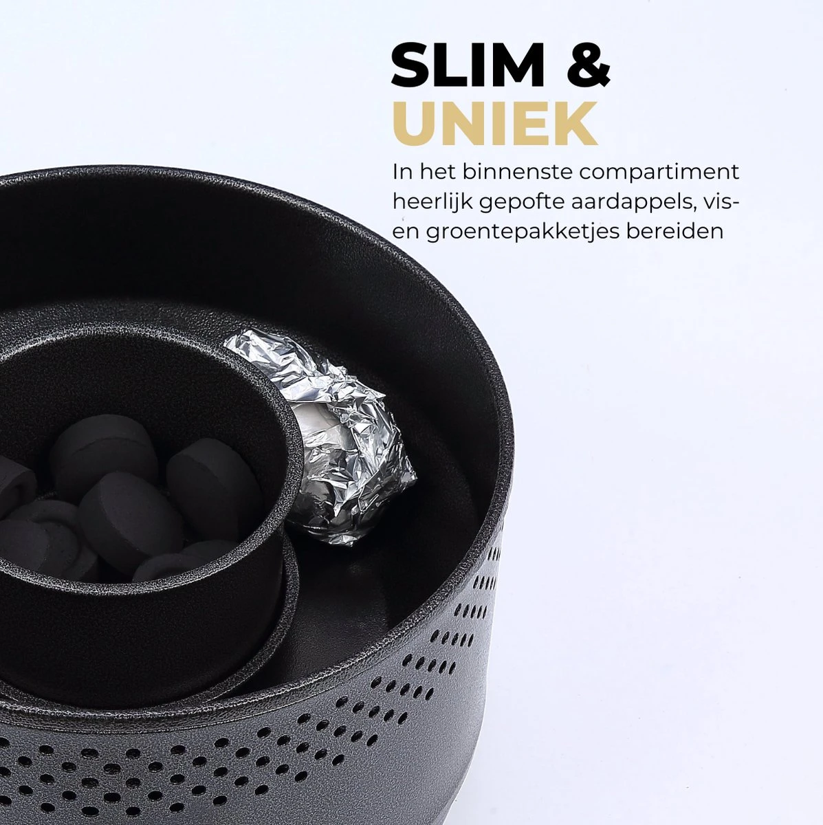 Gemakkelijk en snel barbecueรซn op diverse locaties zoals op de boot, balkon, terras of meenemen naar een vakantiebestemming. Met een bakoppervlak van 27,5 cm laat de barbecue zich makkelijk gebruiken tot 4 personen, waarbij door een unieke bouw van de barbecue ook bijvoorbeeld groente kan worden gekookt. Door het speciale ventilatiesysteem zijn de kolen snel op temperatuur. Binnen 3 minuten kan het vlees, vis of groente op de barbecue om vervolgens heerlijk te genieten van een lekkere maaltijd en gezelligheid.