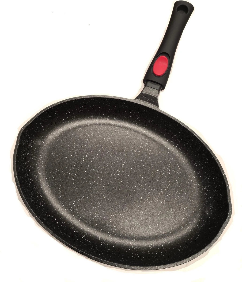 Satoshi Vispan Ø34 CM – Afneembare Handgreep – Marble Coating – Gietaluminium