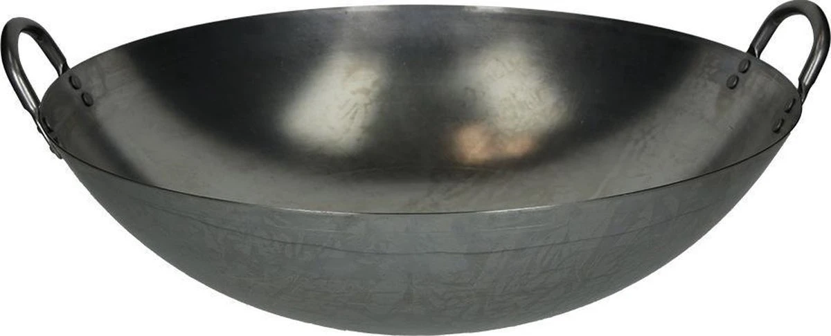 Wokpan Met 2 Handvaten – Ø 43 Cm – Staal – Platte Bodem – Traditioneel